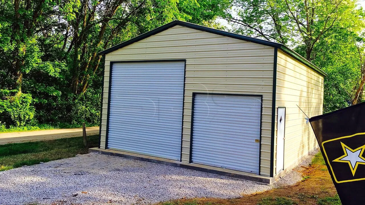 El garaje metálico de 22x26 con capacidad para dos coches, una puerta de acceso y dos puertas de garaje enrollables es una inversión práctica y versátil. Su estudiado diseño, su robusta construcción y sus múltiples puntos de acceso lo convierten en un excelente complemento para su propiedad, ya que le permite guardar vehículos, trabajar y disponer de espacio de almacenamiento adicional, lo que contribuye a una configuración organizada y eficiente que aumenta el valor y la utilidad de su propiedad.