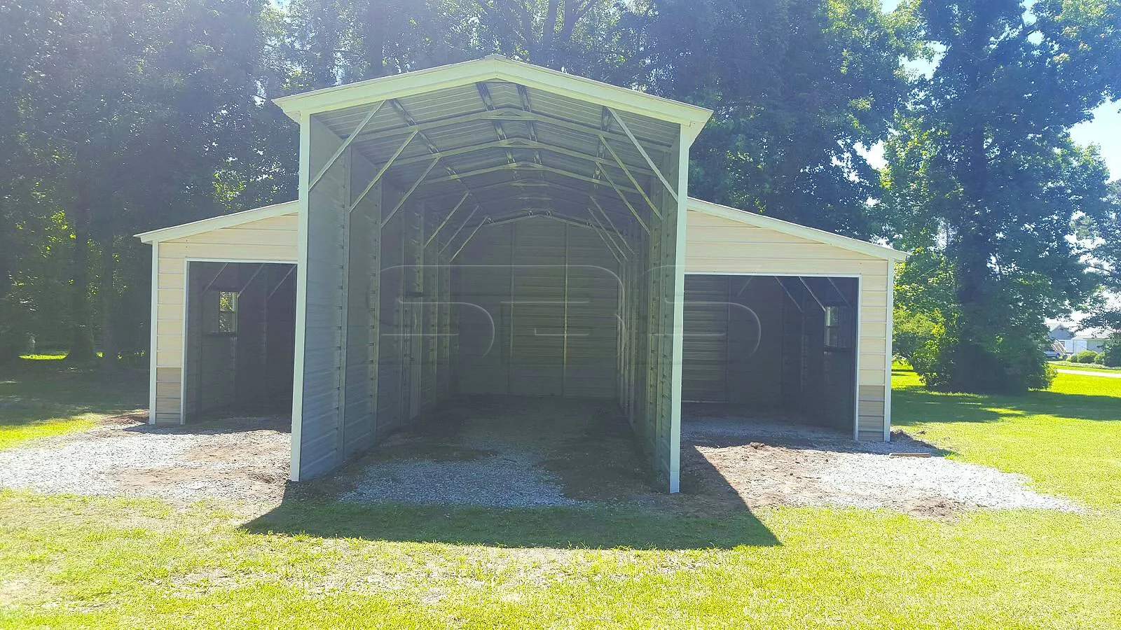 El granero metálico de 36x36, con tejado blanco impoluto y molduras blancas, es una estructura atemporal y funcional que combina sin esfuerzo la estética clásica con la utilidad moderna. Con unas dimensiones de 36 pies de ancho y 36 pies de largo, este granero ofrece un espacio interior amplio y adaptable, por lo que es ideal para una amplia gama de necesidades agrícolas y de almacenamiento.